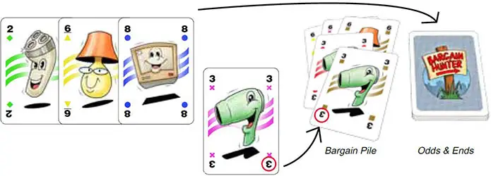 If yes, you place these on your bargain pile; all other cards (including the super special offers) are placed upon your odds and ends stack face down.