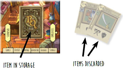 Each player chooses one item card in their hand to place in storage. When placing an item into storage, place the card facedown on your shop board. All other item cards that were not placed in storage are discarded.