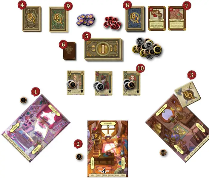 If multiple shops are still tied, the tied players choose in clockwise order starting from the player with the quest token.