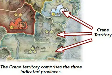 Scorpion and Crane place control tokens in the provinces containing their respective clan capitals.