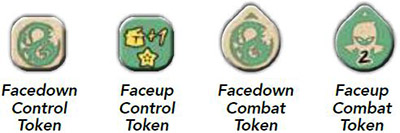 Each clan has control and combat tokens that contain its clan symbol. These tokens are double-sided.