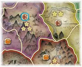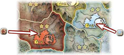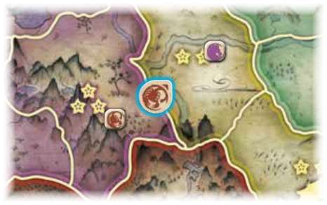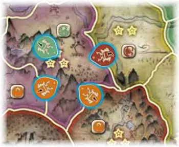 ![]() Unicorn attacks Crab. Crab defends his province by placing a combat token in its center. |