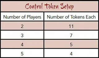Set Aside Control Tokens: Each player sets aside the number of control tokens indicated by the "Control Token Setup" table to the right. These set-aside tokens will be placed during step 10.
