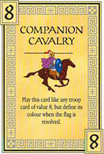 Companion Cavalry: Play this card like any Troop card of value 8, but define its color when the Flag is resolved.
