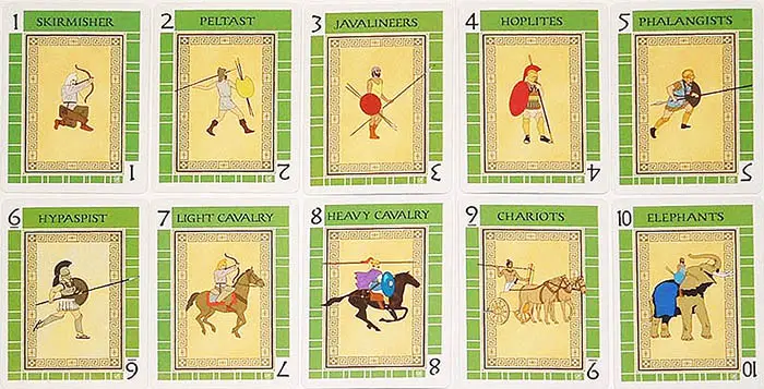 Leader (Alexander, Darius): The Leaders are wild cards. Play a Leader like any Troop card, but define the color and value when the Flag is resolved. For example, you have a Blue 8 in your layout.
