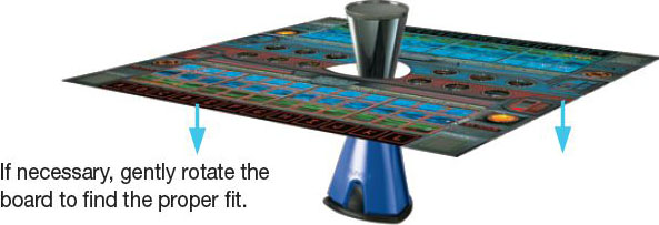 Lower the gameboard over the tower. Note: The gameboard fits only one way over the tower.