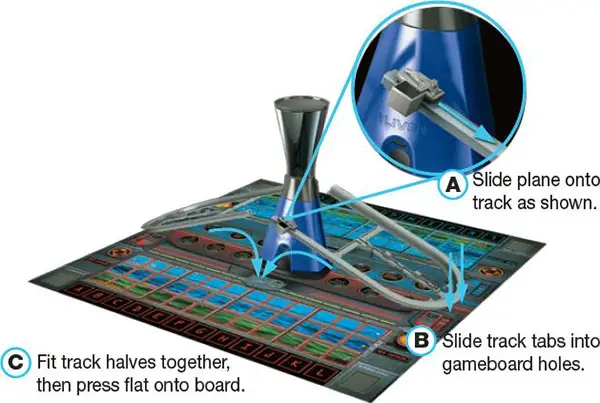 Board Assembly: If the game announces that something is wrong with the board, review the game assembly information to ensure that the tower, track, plane and dividers are properly attached to the gameboard.