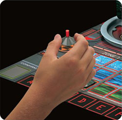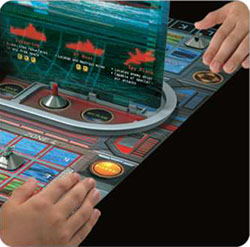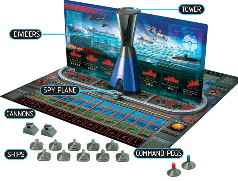 BATTLESHIP LIVE has a talking, motion-sensing tower that guides you through the game. A special camera in the tower "sees" reflective material on the ships and special gameboard spaces.