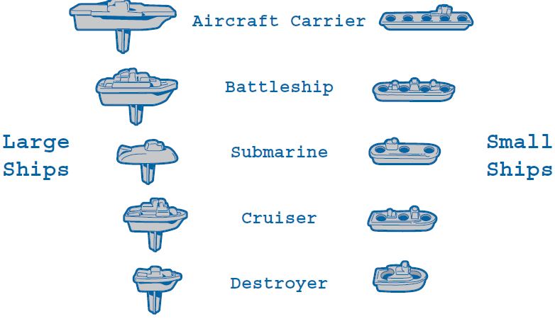 Your opponent places a matching large ship on his side of the ocean grid. Figure 6 on page 4 shows which large and small ships match each other.