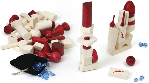 All other pieces must be balanced on the foundation or on another piece in your tower.