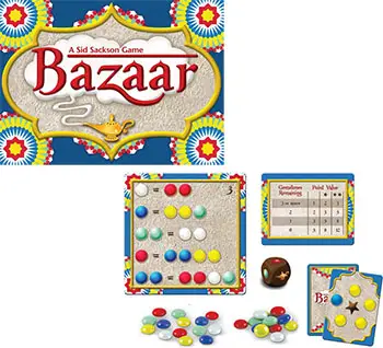 Through skillful trading and re-trading, each player attempts to gain the right combination of colored stones from the Bank to purchase the wares displayed in the Bazaar.