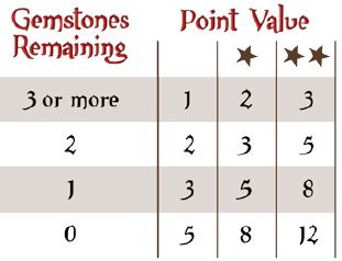 Point values of the various Ware Cards are determined by the number of stones the purchaser holds following his transaction.