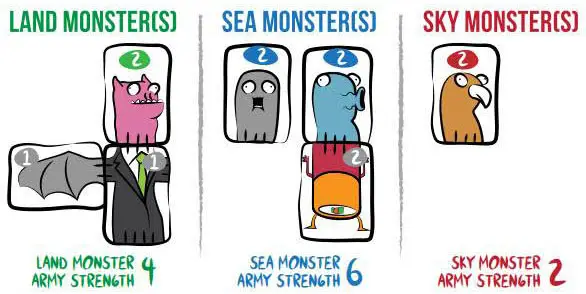 Notice that you can build multiple Monsters of the same type and add their strengths together because all your Monsters of the same type will always fight together!