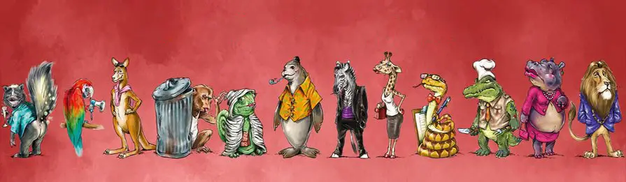 And the animals are already pushing and shoving and baring their teeth. Will the crocodile bite its way ahead? Or will the skunks' odor cocktails be too over- whelming? And the chameleons will probably make complete monkeys of themselves!