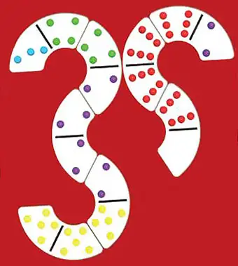 Taking turns in a clockwise direction, players add a matching piece that numerically fits to one of the four ends.