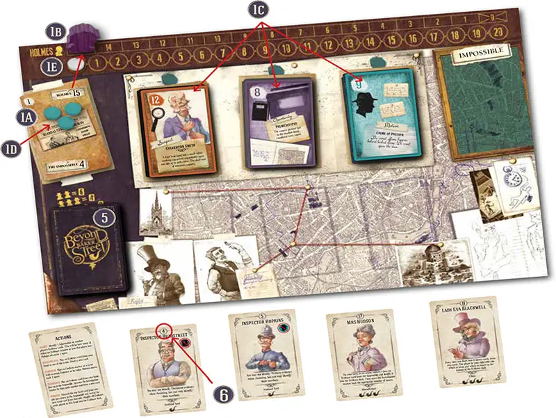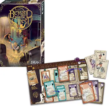 Beyond Baker Street is a cooperative game where you must unite your intellect to solve a case before the great Sherlock Holmes himself. You will need to discover the Suspect, their Motive, and Opportunity to have committed the crime before Holmes does.