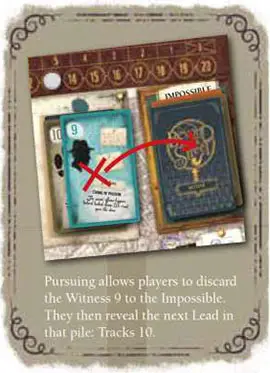 As Dead Leads with the Pursue action: A player discards a Lead from a section facedown into the Impossible. The Lead value is not added to the Investigation track.