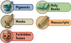 If there is still a tie because none of the players had Monks, use the next category on the Scriptorium (Pigments), then the next, etc. until the tieis broken.