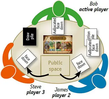 Note: Because it is easy to forget who the active player is in this phase, we recommend that the active player put the draw pile in front of herself.