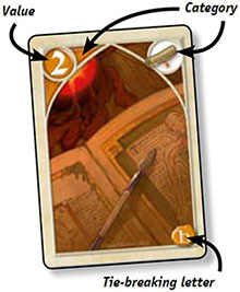 Note: The numbers on the cards are not Victory Points, they are simply used to determine who wins in each category.