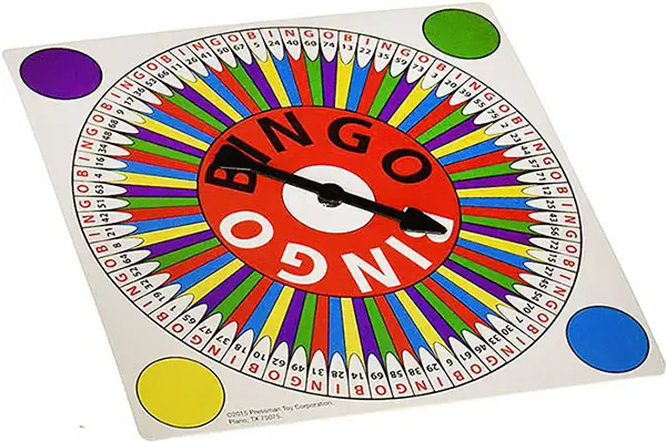 One player is selected to be the Caller. The Caller's job is to spin the spinner to determine which Bingo letters and numbers are played.