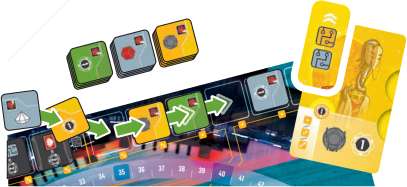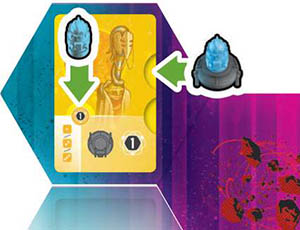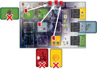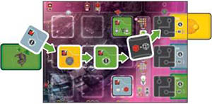 Example: Valentin chooses to perform Sequence B. Because he only has a gray die showing a star, he can do this without losing any VP.