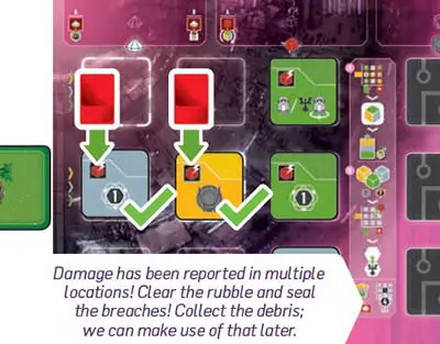 At the end of the game, all the debris placed on your Technology tiles is automatically moved to your storage area.