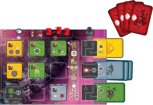 Take these tiles from their respective decks and place them in the order shown on the card (from high to low) in the tile display. Tiles injected into the display can push tiles that are already there. If some tiles are ejected from the display, place them in a discard pile.