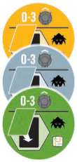 If, during your turn, you performed Sequence A, look at the top of the card first; if you performed Sequence B, look at the bottom of the card first. If the color of die specified is no longer available, look at the second part of the card.