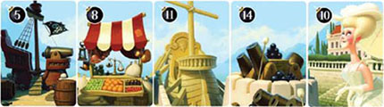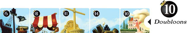 As you may have noticed, there are two victory cards for each player (one with a value of 10 doubloons, the other with a value of 20 doubloons).