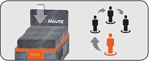 The Selector selects a Word Cue card from the draw side of the box, reads it aloud, and places it face-up on the table.