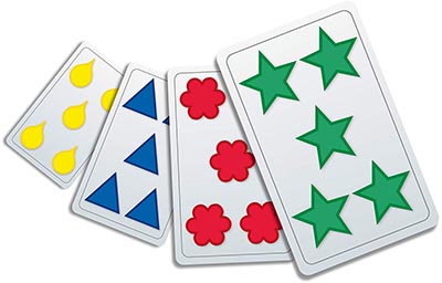 Each player can play cards from his or her hand onto the pile to the left or the pile to the right.
