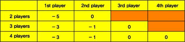 However, the sum of penalty tokens must not be under -10 point including the penalty tokens which a player receive at the beginning of the game.