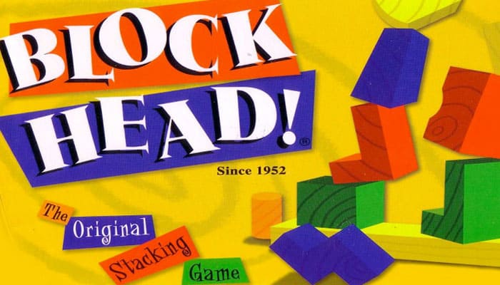 Spread out the 20 wood blocks and place the starter block labeled "BLOCKHEAD!" on a flat surface. This is the base.
