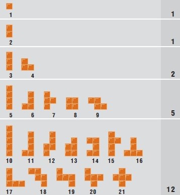 Each player has to fit as many of his/her 21 pieces on the board as possible.