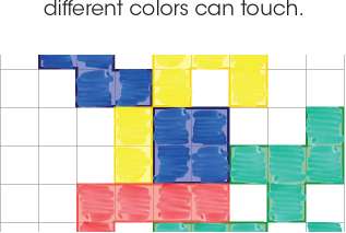 Each new shape you fill in must touch at least one other piece of the same color, but only at the corners.