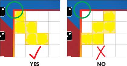 The first shape of each color must cover a corner square.
