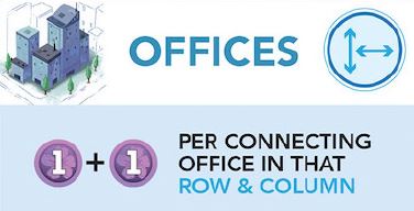 Offices score 1 point for the placed Office tile and 1 additional point for each connecting Office tile in the same row and column.