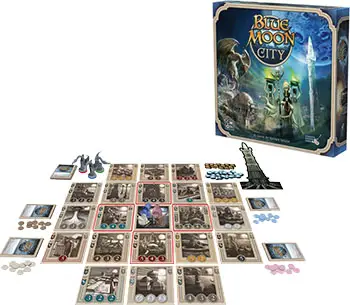 In Blue Moon City, you must take charge of the reconstruction of the great city and restore its sacred Obelisk. Throughout the game, you must move across the modular tile board, using contributions from the eight peoples of Blue Moon to rebuild the city's buildings.
