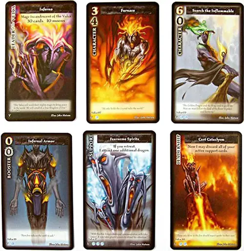 When you begin to play, both players select the leader of one of their prepared decks and reveal these simultaneously. If you play more than one game, start each new game in this way. Then the player who first reaches a total of at least five crystals is the final victor.