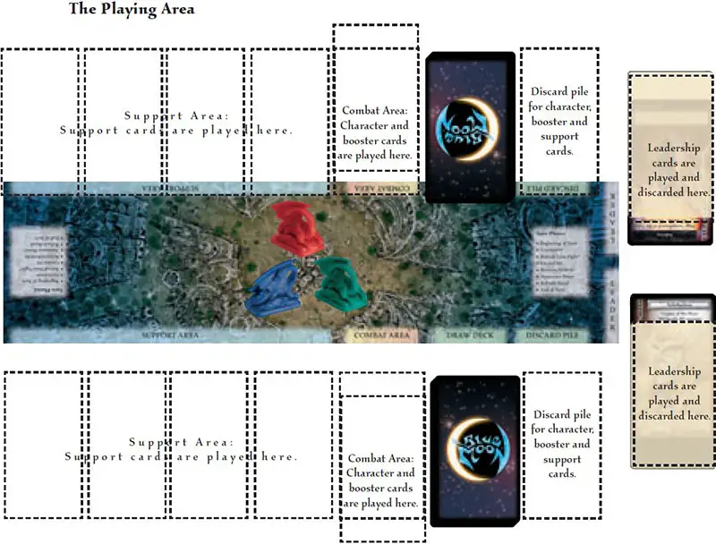 Exception: When discarding leadership cards, these are always placed face up in one separate stack partially overlapping the leader card (on top of any previously played leadership cards).