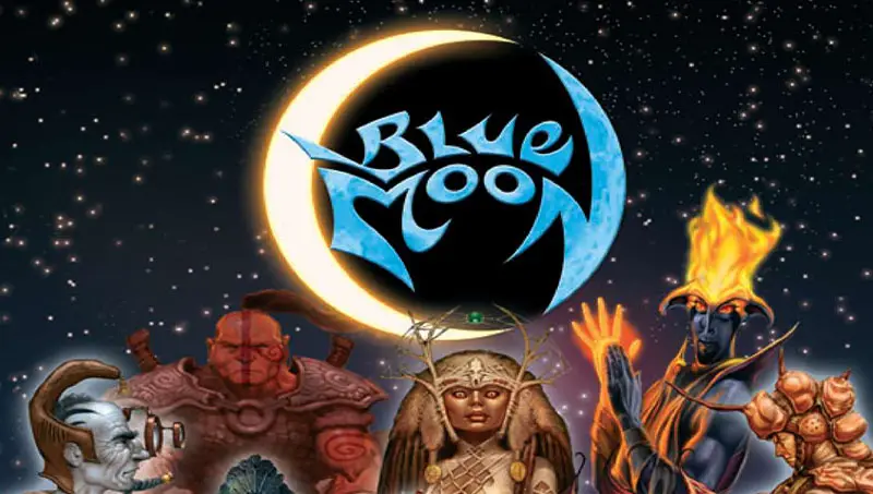 Blue Moon is a card game for two players, which has often been compared to Magic: The Gathering, although it has considerably different game mechanics. Particularly, it is not a CCG: There are no random cards in any expansion. It can thus be regarded as the first LCG, although it doesn't use that term yet.