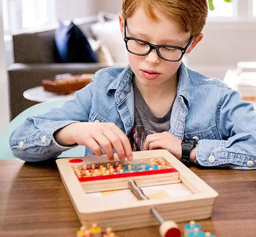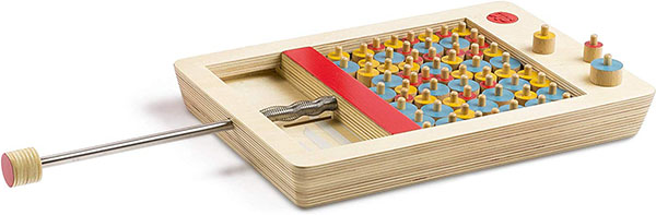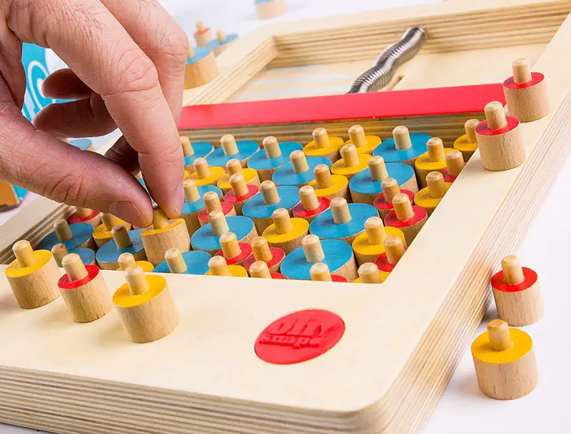 - Take hold of the tension bar and move the yellow piece next to the other game pieces on the board.