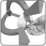 2. Click the bowl-shaped connector piece to the holes in each of the three legs.