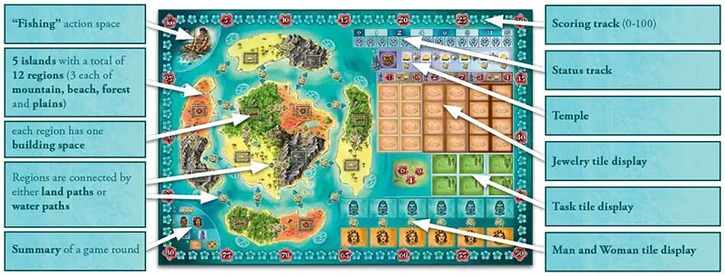 - 2 players: 5 tiles ⇨ Helper, Temple, Build, Man / Woman (together), Land / Water Path (together)