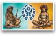 Example: Anna uses two of the five die points she has available for the tattooing "Helper" action, and shifts two of her man tiles down. A total of 5 status symbols are on those two man tiles, so she moves her status marker from 0 to the first space below the 4 on the status track. She uses an additional die point to shift one of her woman tiles down in exchange for 3 shells from the general supply. She plans on using the final two points for an offering (see below).