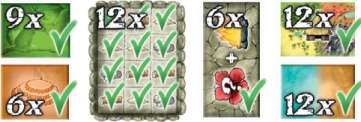 - 3 players: 6 tiles ⇨ Helper, Temple, Build, Man, Woman, Land / Water Path (together)