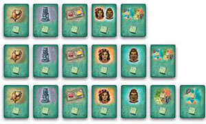 - In each player color: 12 huts, 4 priests, 2 markers, 3 dice, 1 player board