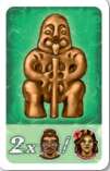 Note: At the end of the game, when players complete their three remaining task tiles, you may use one Yellow God per tile, thus allowing you use up to three total cards. You must pay one offering for each.