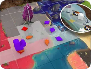 3-4 Players: Use the side of the board with smaller squares and a glowing white border (shown). For 3 players, use the white border as the outside edge of the play area. For 4 players, use the full board.